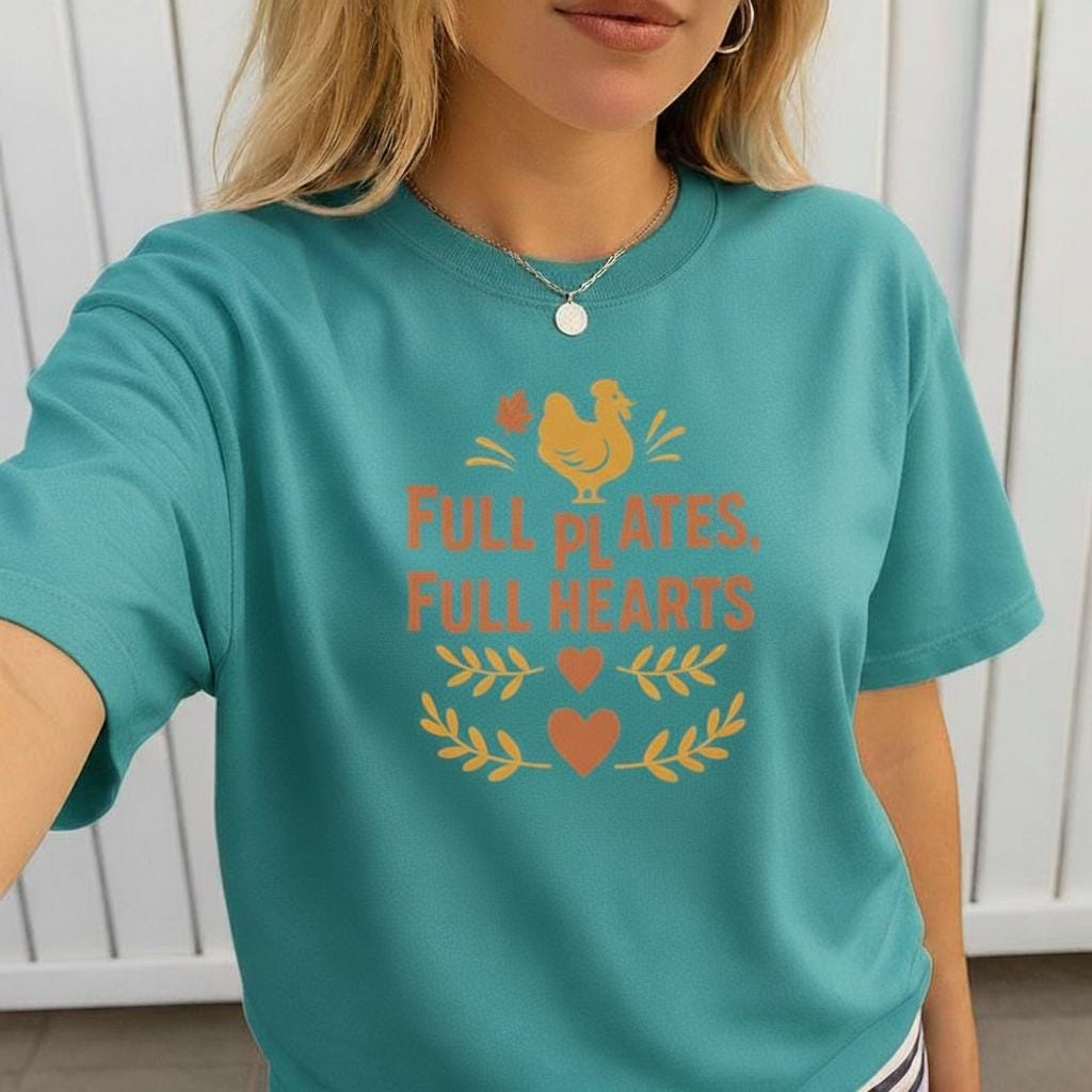 Description: The Full Plates Full Hearts Thanksgiving Shirt - Fall Turkey Graphic Tee - Autumn Family Dinner Shirt - Holiday Feast T-Shirt - Cozy Fall Outfit hoodie offers a perfect balance of comfort and style. Made from a soft cotton blend, it’s ideal for layering or wearing on its own.
