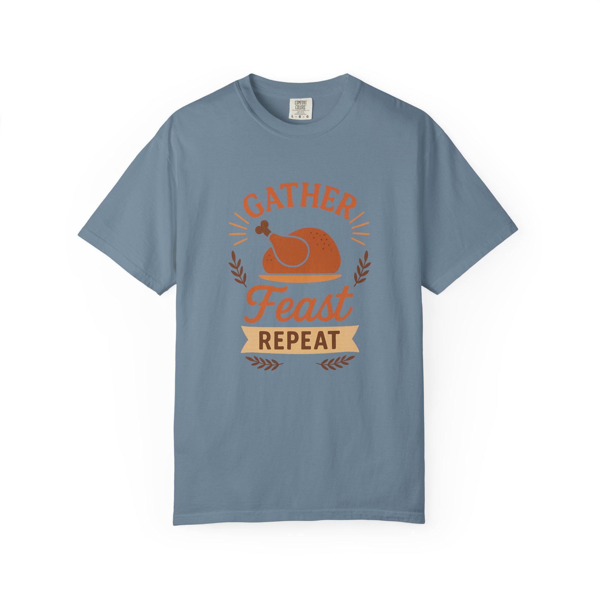 Description: The Gather Feast Repeat Thanksgiving T-Shirt Funny Turkey Dinner Shirt Fall Holiday Family Matching Outfit Autumn Feast Graphic Tee Gift hoodie offers a perfect balance of comfort and style. Made from a soft cotton blend, it’s ideal for layering or wearing on its own.