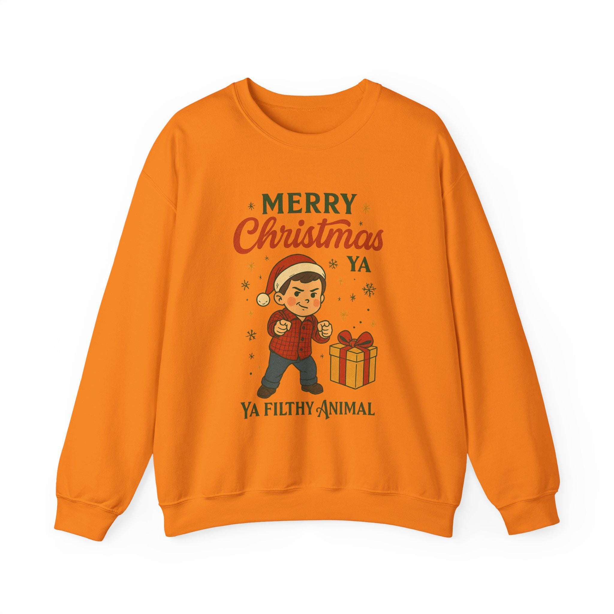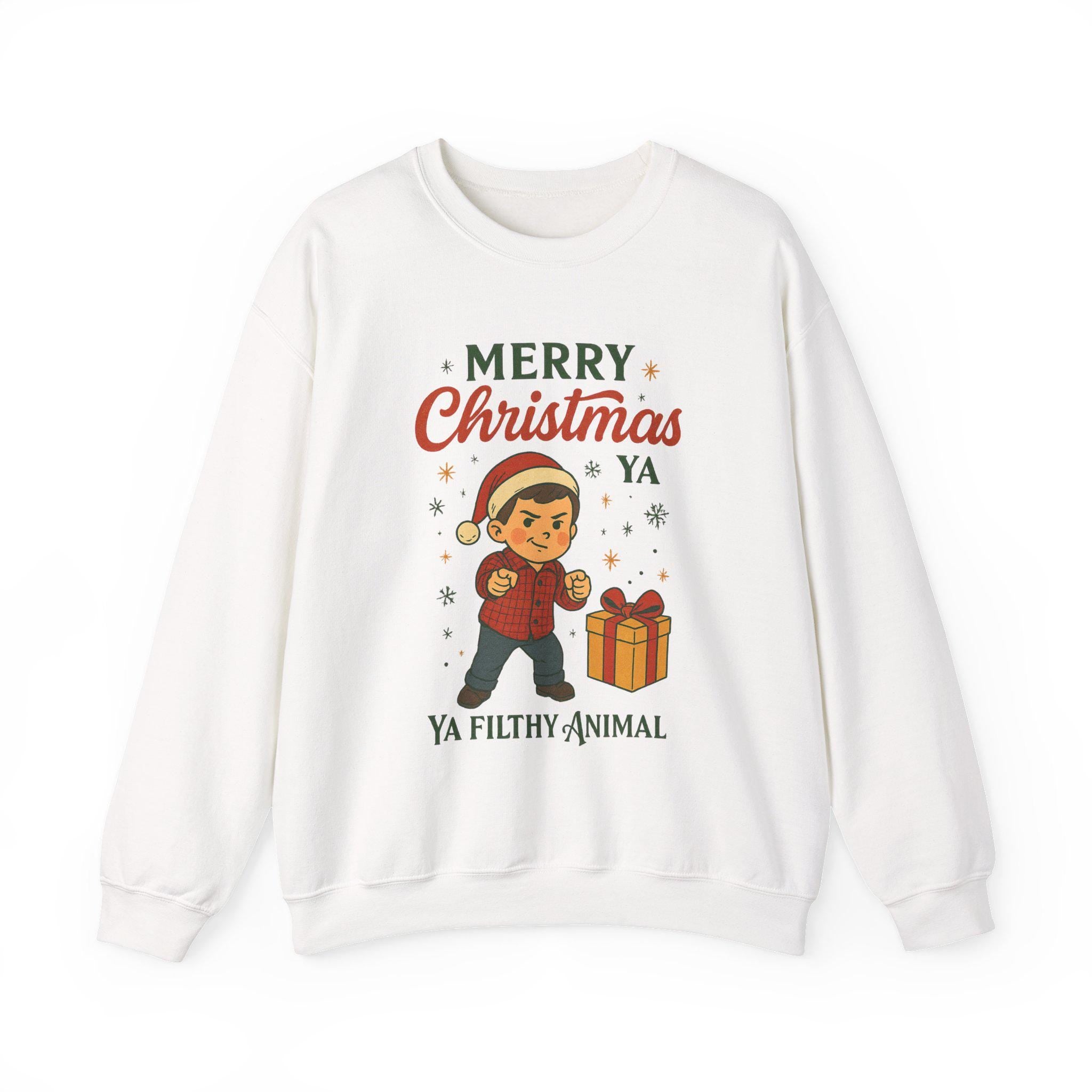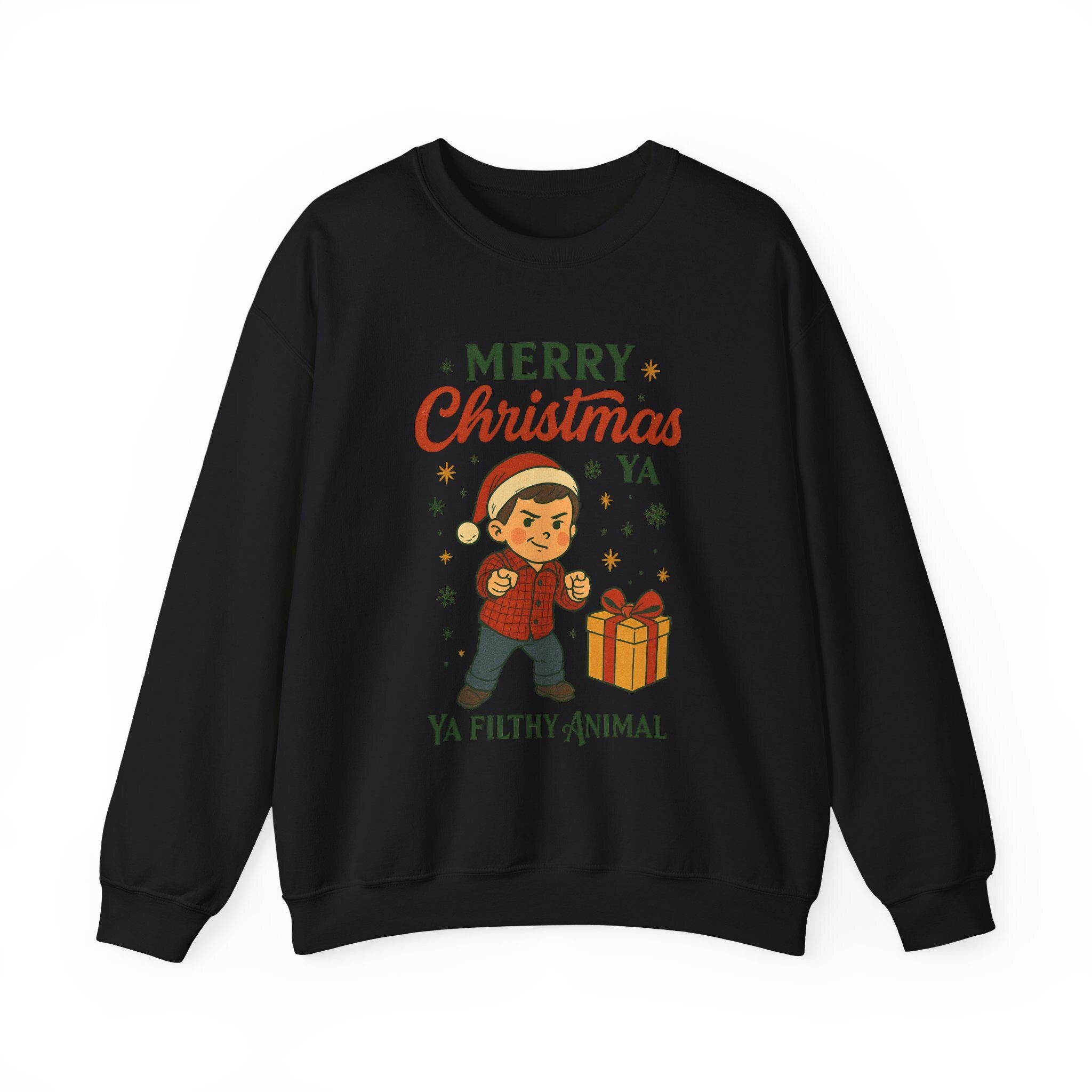 Merry Christmas Ya Filthy Animal Sweatshirt | Funny Christmas Shirt | Retro Holiday Graphic Pullover | Cozy Xmas Gift for Her or Him