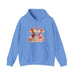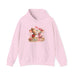 This cozy hooded sweatshirt features a warm, soft fabric and a sweet illustrated design of two affectionate mice surrounded by hearts and floral accents. The medium-heavy 50/50 cotton-poly blend gives a plush, slightly structured feel that holds prints beautifully while keeping you comfortable on cool mornings and chilly evenings. The double-lined, drawstring hood and roomy kangaroo pocket add everyday practicality. Wear it to curl up with a book, run a quick errand, or share a quiet moment with someone you love — the gentle artwork sets a tender, playful tone without shouting for attention.