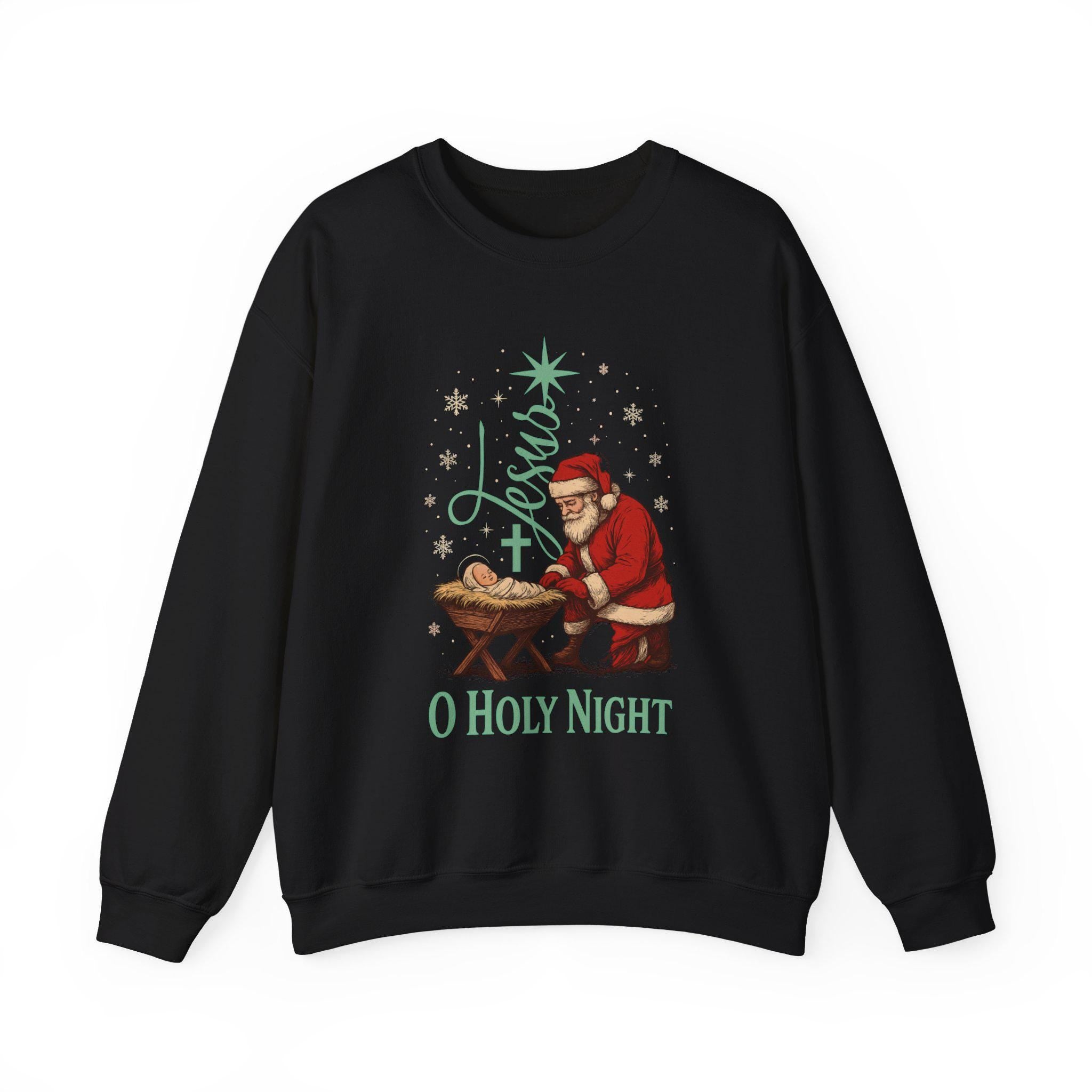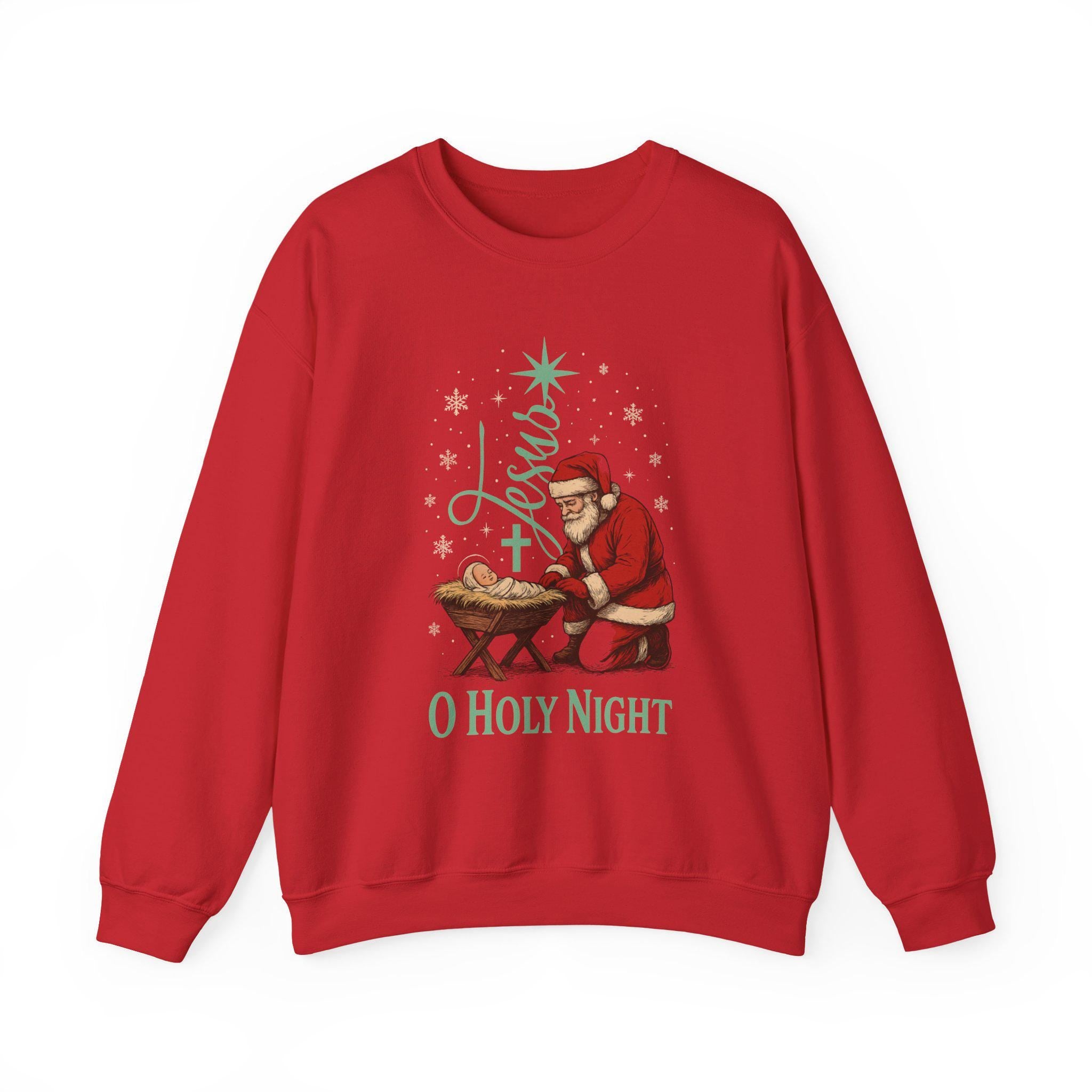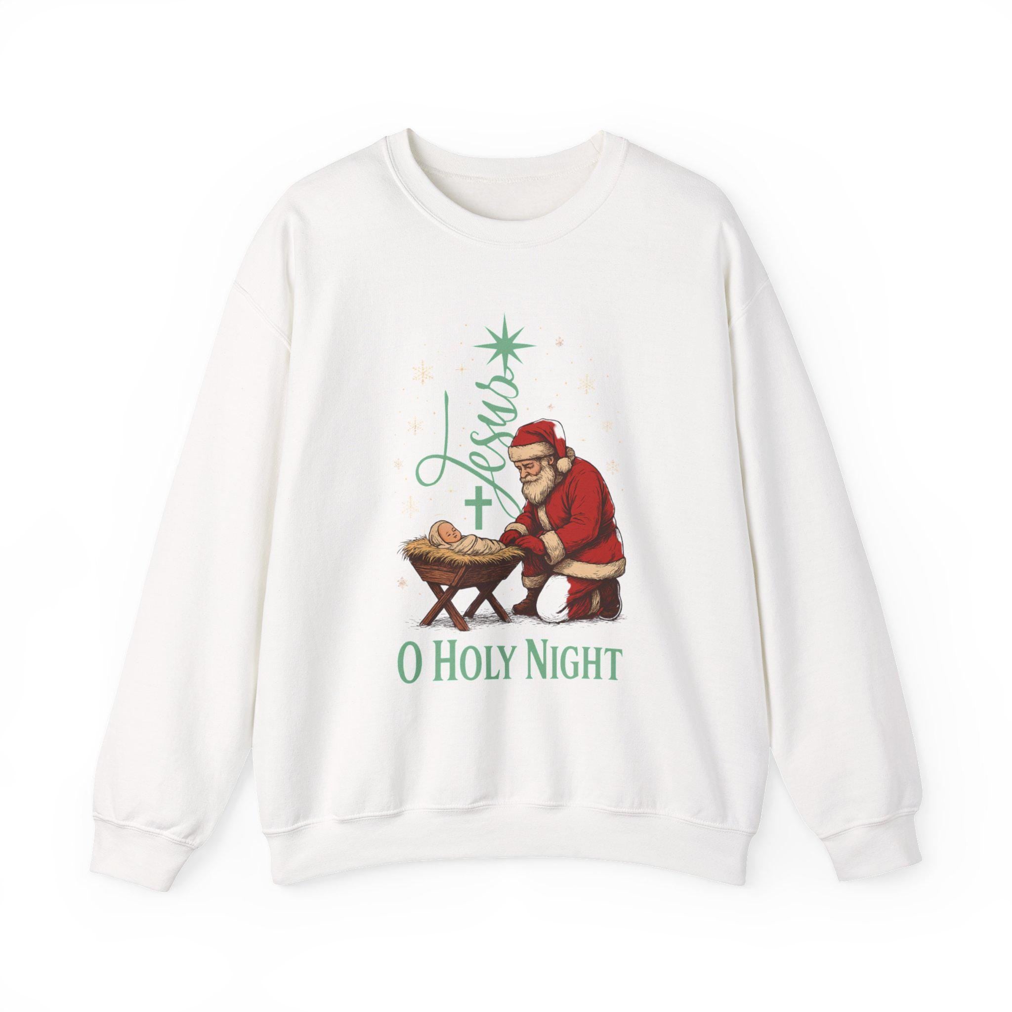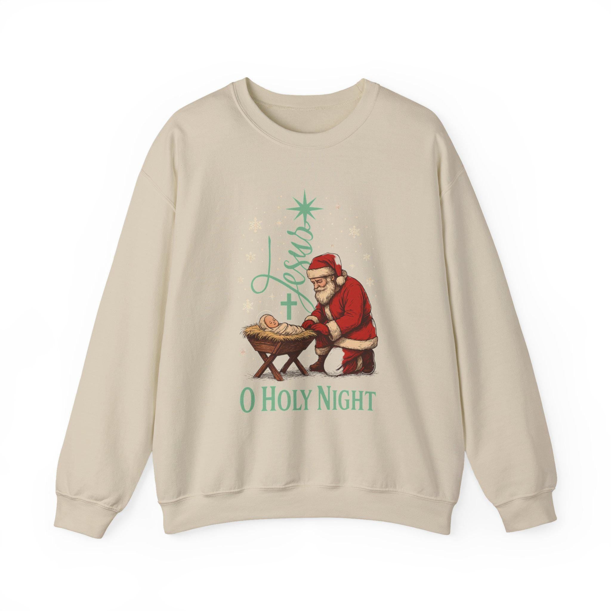 Description: The Santa Kneeling at Manger O Holy Night Sweatshirt | Christmas Nativity hoodie offers a perfect balance of comfort and style. Made from a soft cotton blend, it’s ideal for layering or wearing on its own.