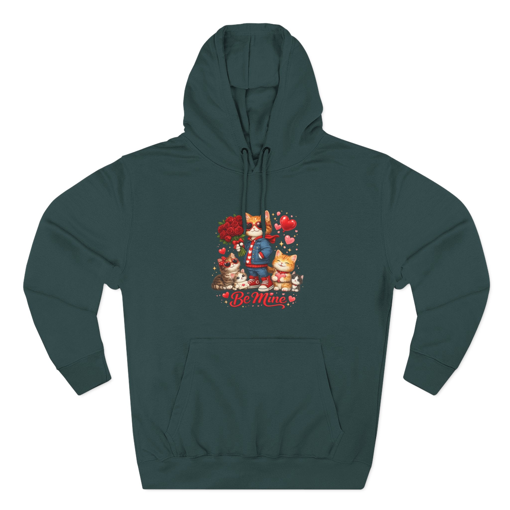 Valentine 'Be Mine' Cat & Flowers Hoodie