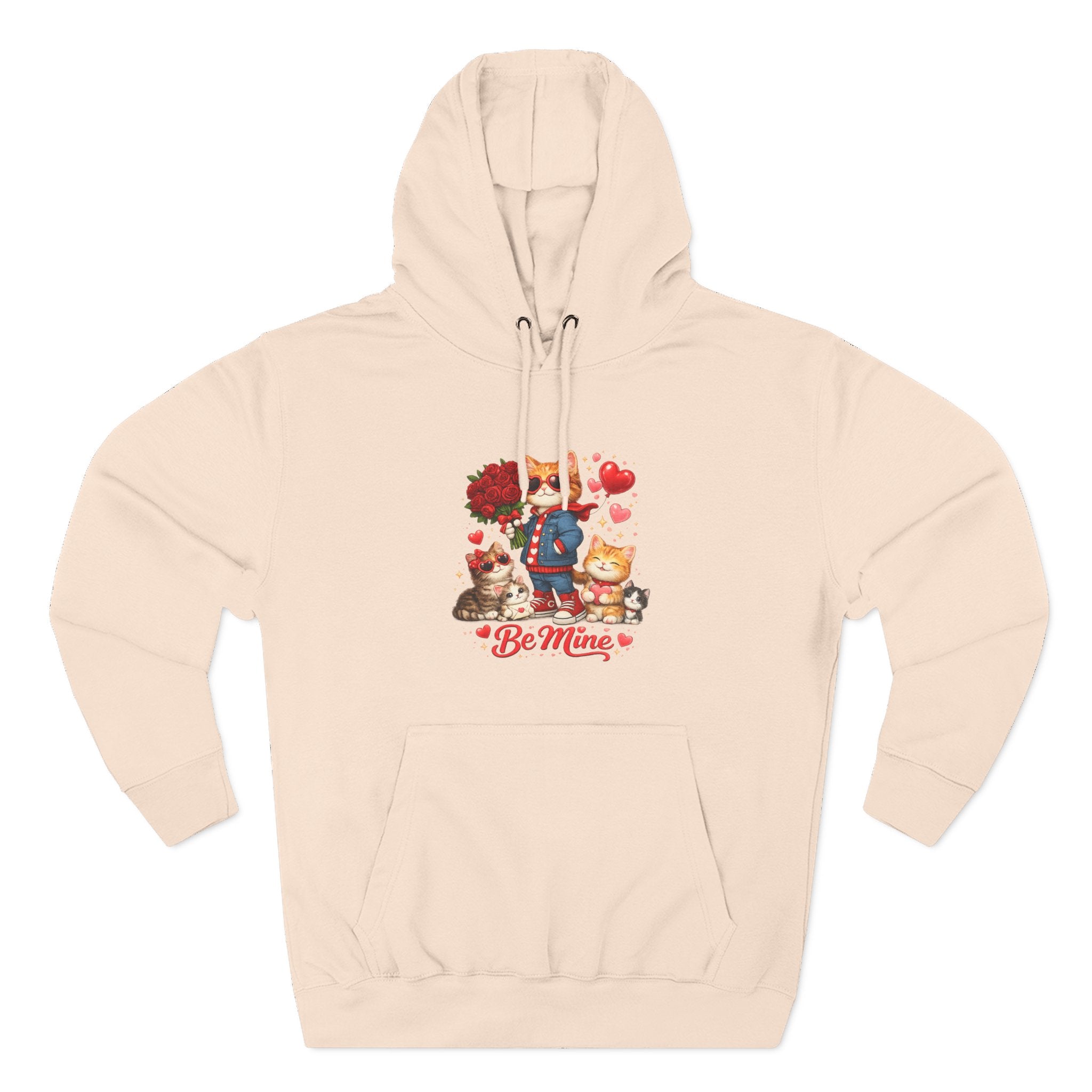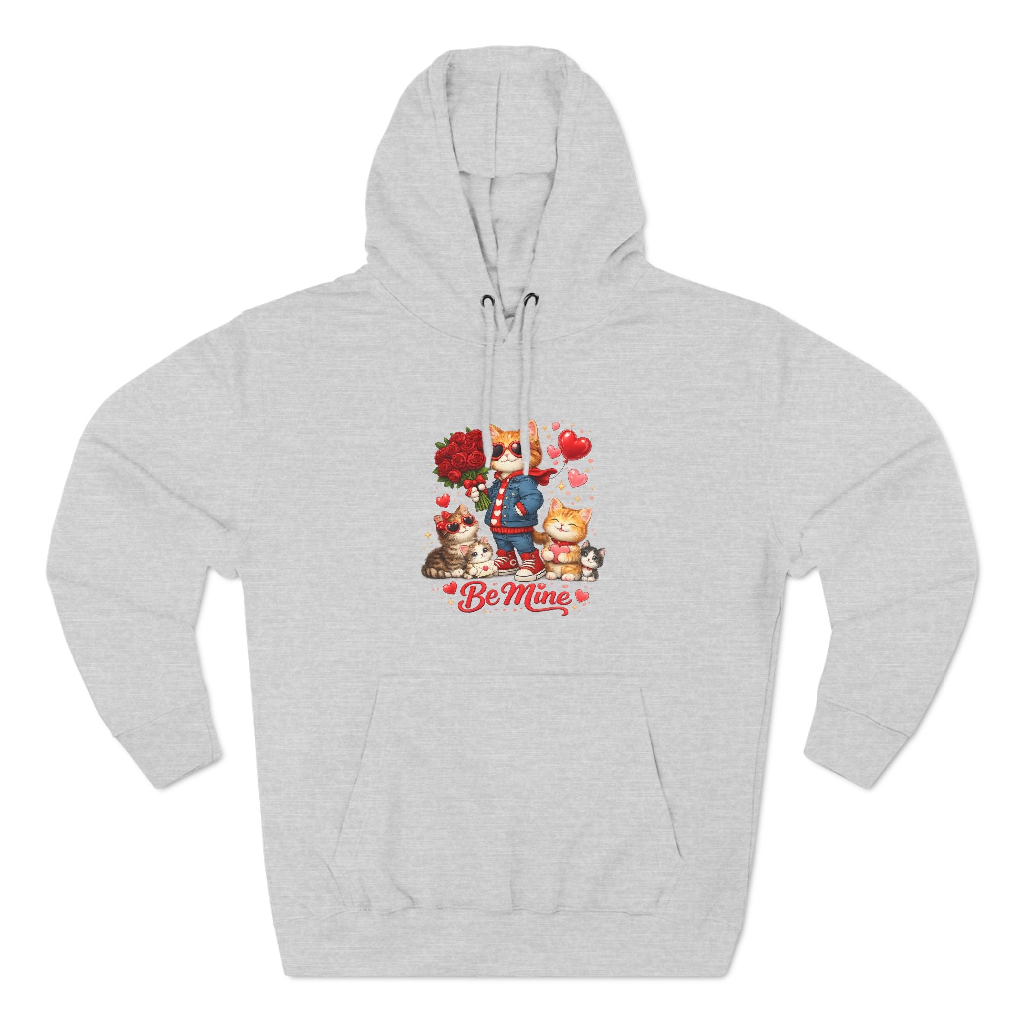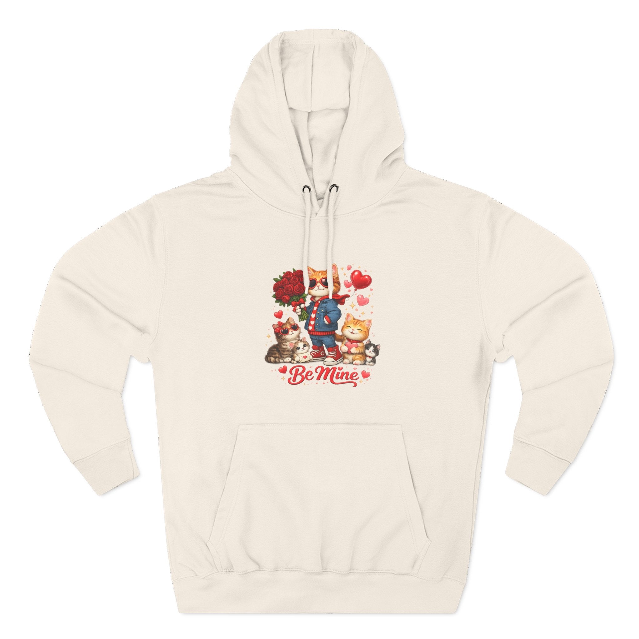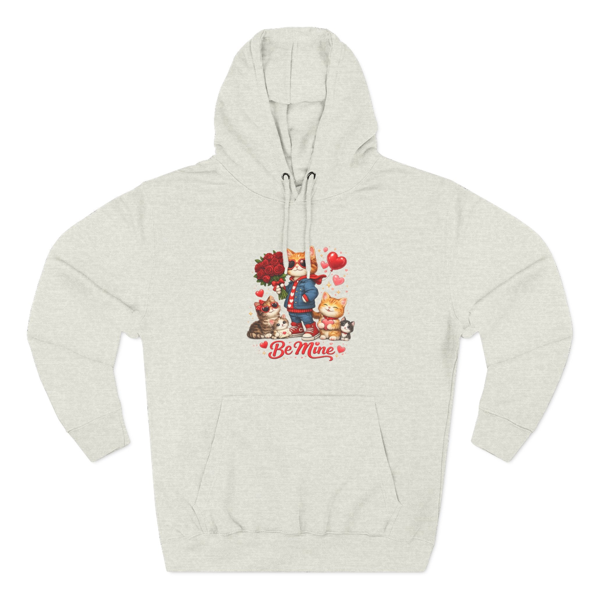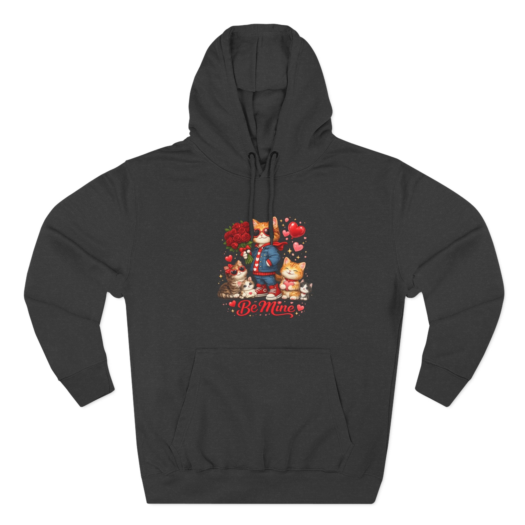 This cozy fleece hoodie wraps you in gentle warmth and a soft, lived-in feel while showing off a sweet, whimsical design. The artwork—playful characters, heart motifs, and the ‘Be Mine’ sentiment—sits low on the chest, adding a lighthearted, affectionate touch without shouting. The roomy kangaroo pocket keeps hands warm and your phone close. The adjustable hood with woven drawstrings and metal grommets adds practical comfort, while reinforced seams and tear-away label let you wear it day after day with minimal fuss. It’s a relaxed, everyday layer that reads like a small, personal note: comforting, familiar, and quietly charming.