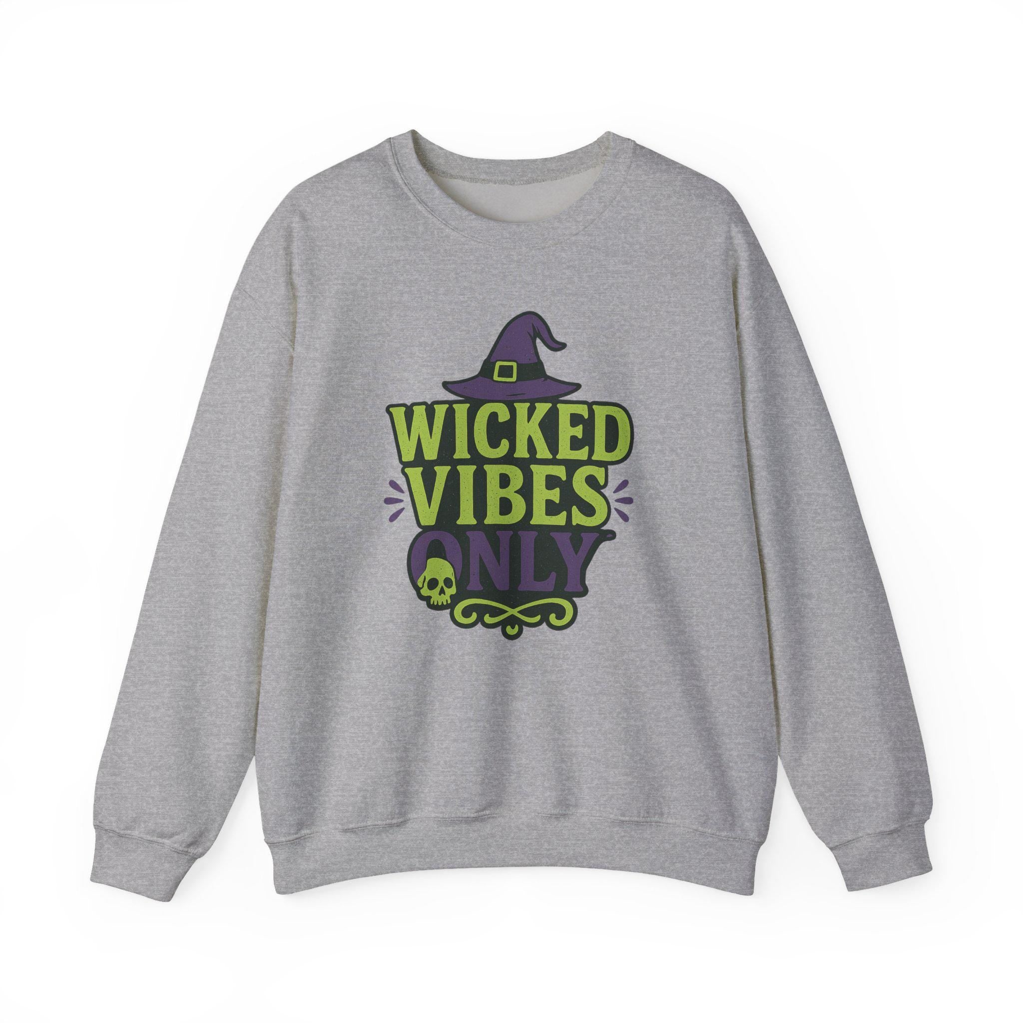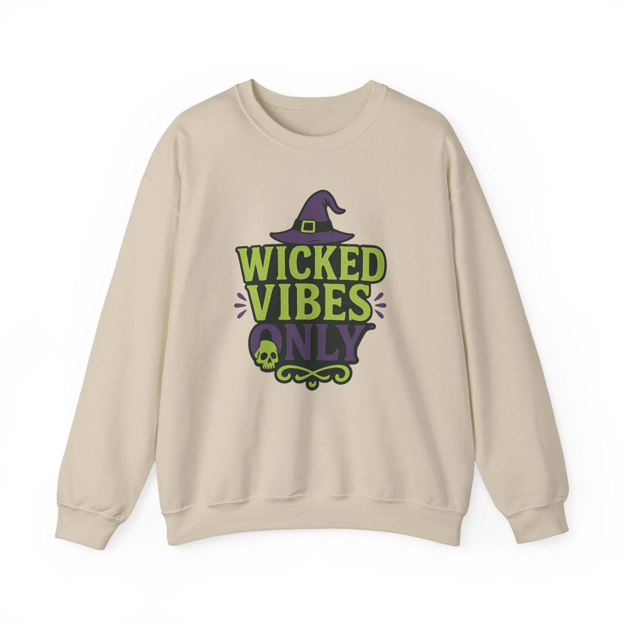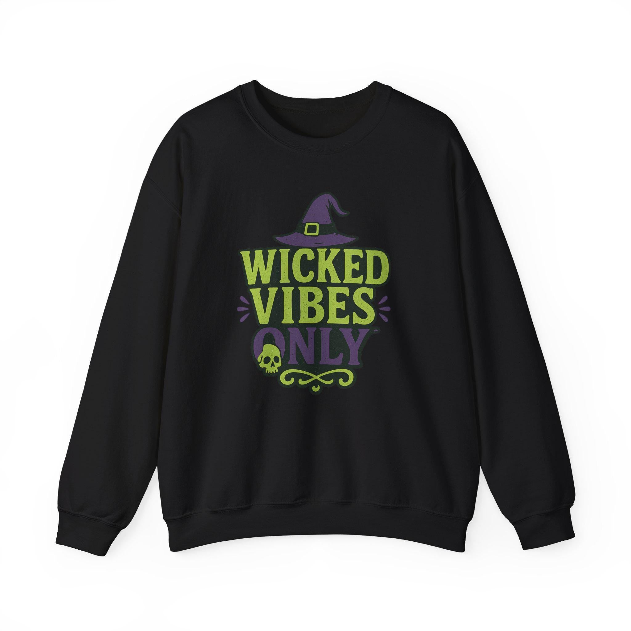 Description: The Wicked Vibes Only Sweatshirt | Cute Witch Hat & Skull Graphic | Halloween Cozy Pullover | Spooky Season Crewneck | Fall Witchy Vibes hoodie offers a perfect balance of comfort and style. Made from a soft cotton blend, it’s ideal for layering or wearing on its own.
